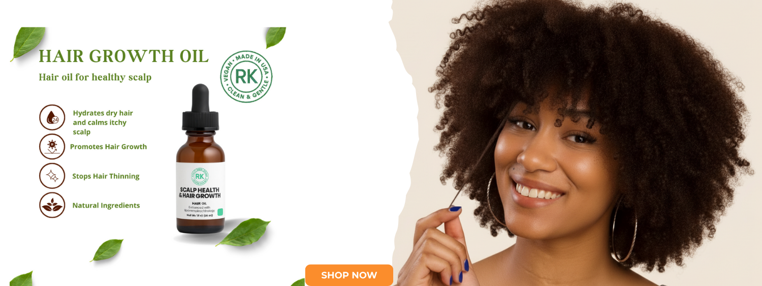 RootKind’s hair oil for scalp heath and hair growth, is a lightweight, vegan blend of 15+ natural oils, vitamins, and extracts designed to balance scalp comfort, restore hydration, and awaken healthier-looking hair growth.